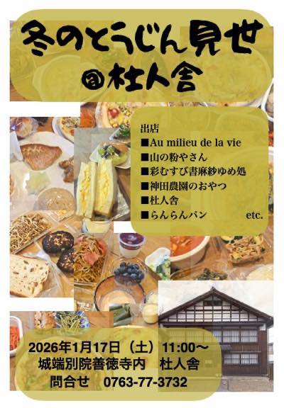とうじん見世@杜人舎(善徳寺研修道場) 1月17日(土)11時〜
